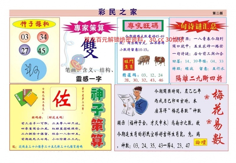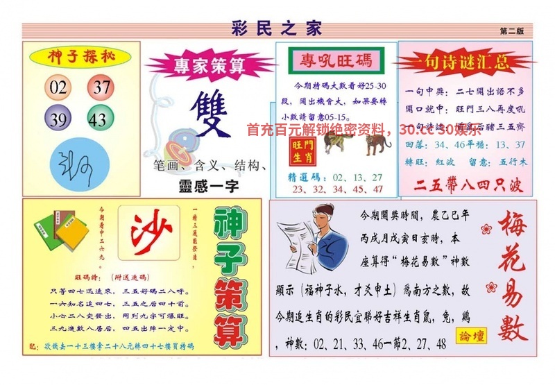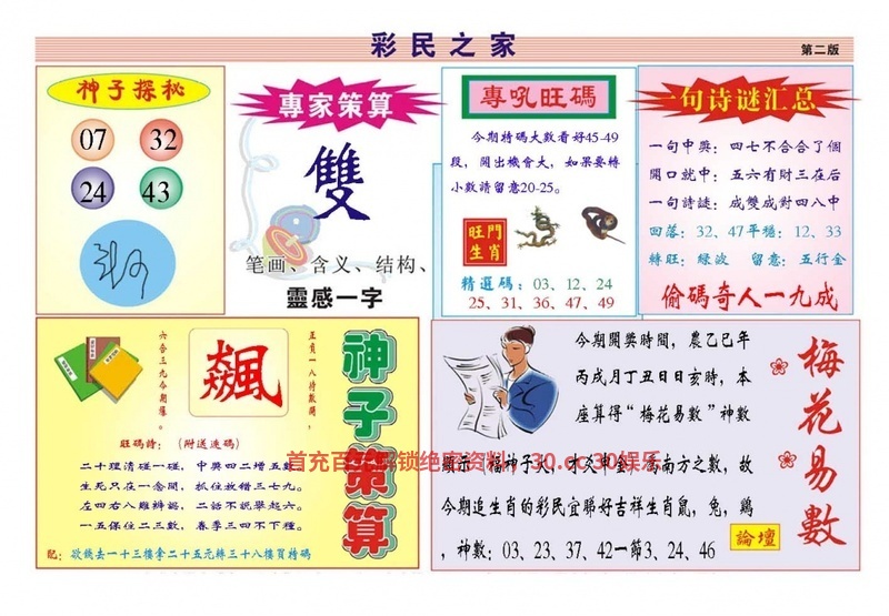 311期:密门仙机/心水特码信/黄大仙天书/波色生肖诗/生肖歇后语